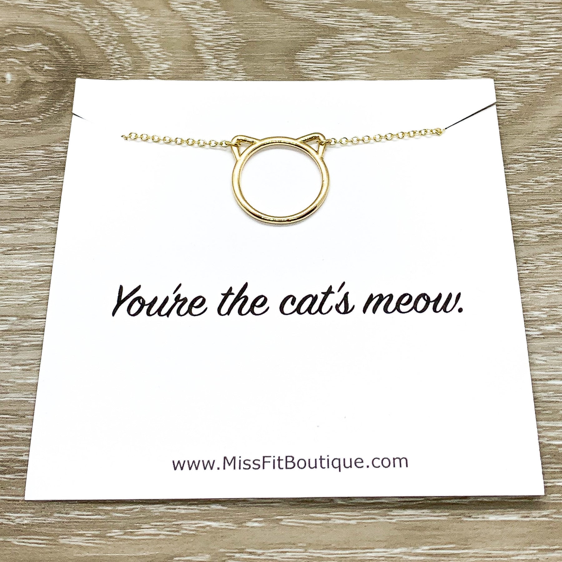 Purrfection Necklace Gold, Dainty Cat Ears Pendant, Minimal Cat Jewelry, Cat Lover Gift, Cat Owner Gift, You’re The Cat’s Meow Quote