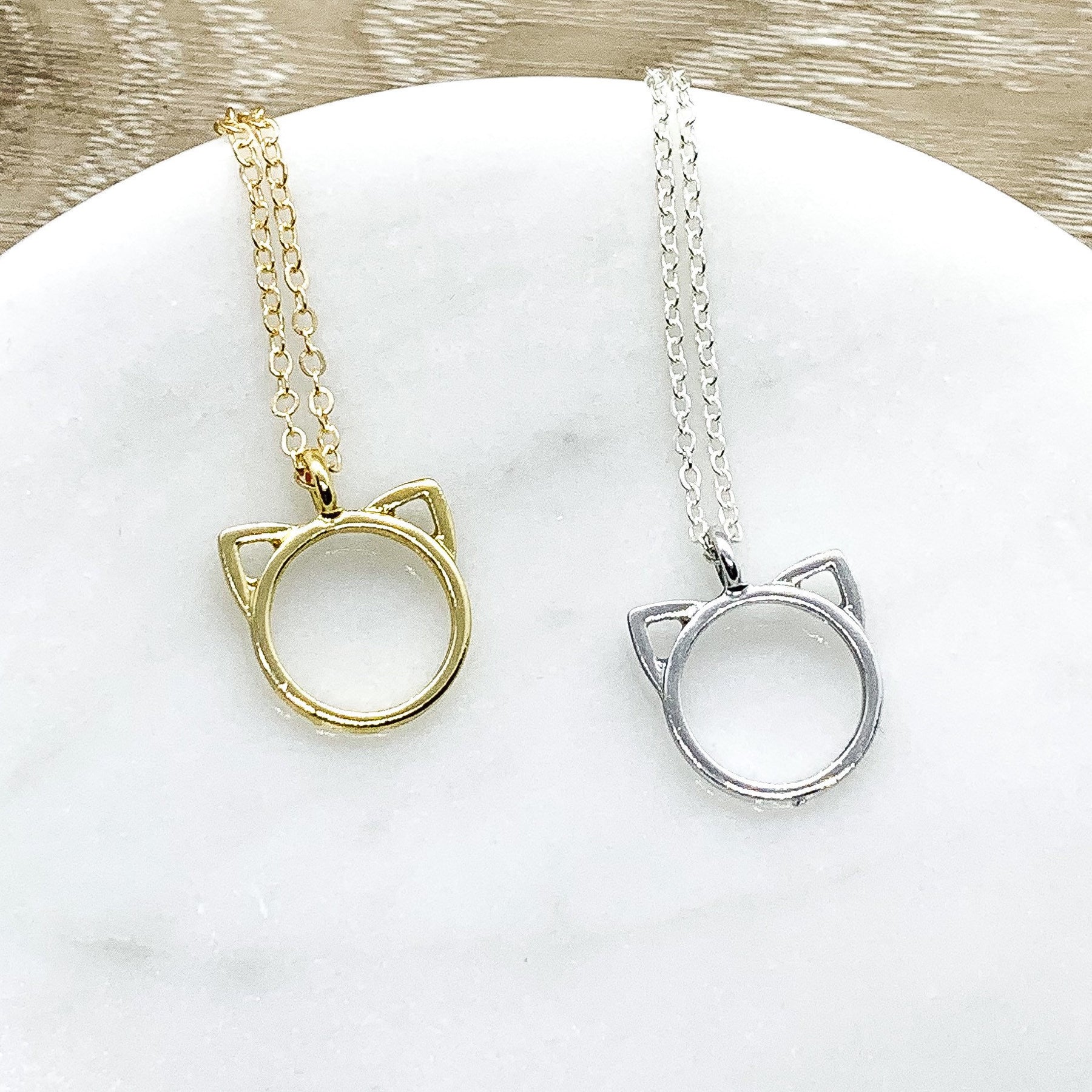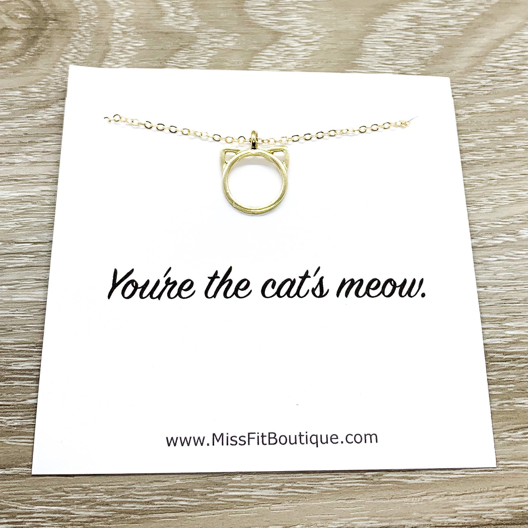 Purrfection Necklace Silver, Dainty Cat Ears Pendant, Minimal Cat Jewelry, Cat Lover Gift, Cat Owner Gift, You’re The Cat’s Meow Quote