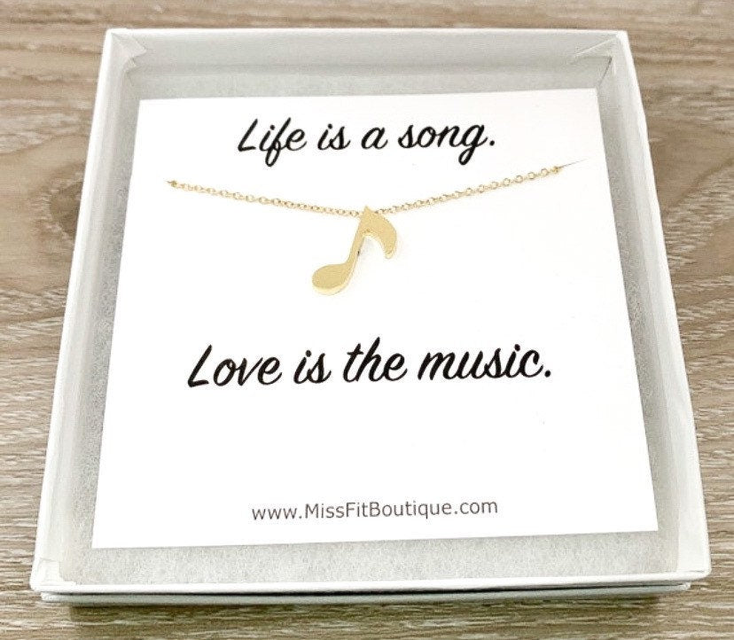 Dainty Music Note Necklace with Card, Music Teacher Gift, Music Jewelry, Music Gift, Musician Gifts, Vocalist Necklace, Composer