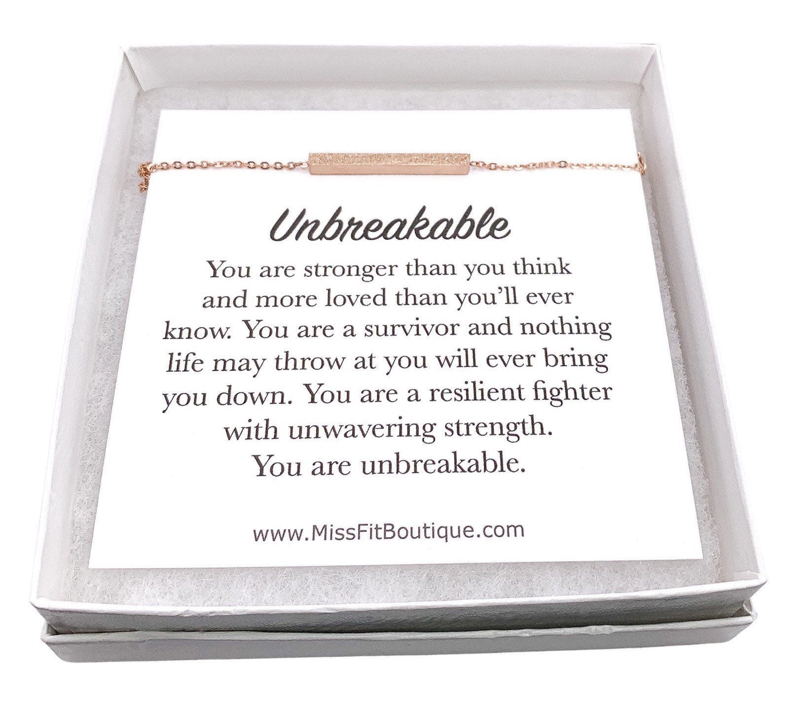Sparkly Bar Bracelet, Unbreakable Quote Card, Strength Jewelry, You’re Strong Gift, Affirmation Gift, Mantra Jewelry, Struggling Friend Gift