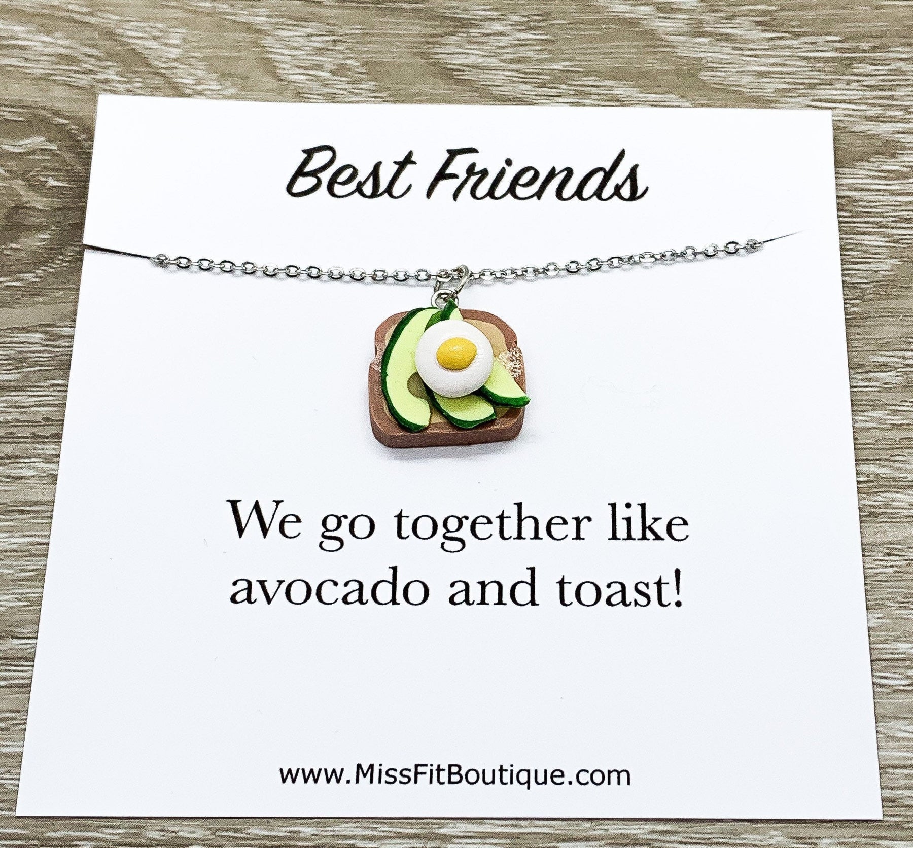 Tiny Avocado Toast Charm Necklace, Go Together Like Avocado & Toast Card, Miniature Food Necklace, Friendship Gift, Cute Friends Birthday