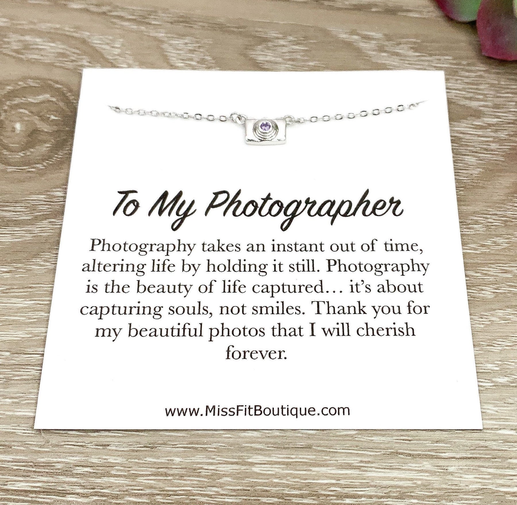 Tiny Camera Necklace with Card, Photographer Necklace, Sterling Silver Jewelry, Photographer Thank You Gift, Photo Pendant, Christmas