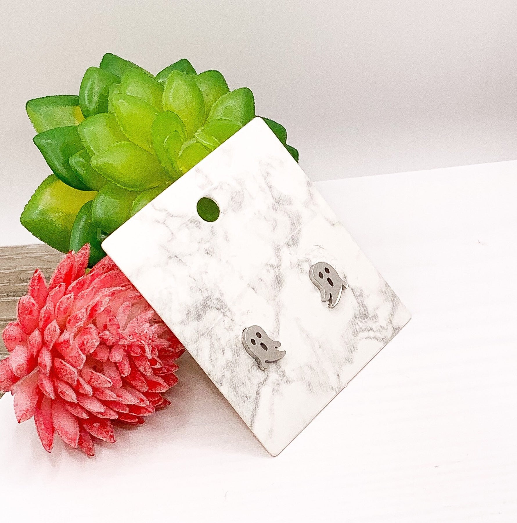 Tiny Ghost Stud Earrings, Halloween Earrings, Scary Jewelry, Little Rose Gold Ghost Studs, Halloween Party Gift, Spooky Earrings for Her