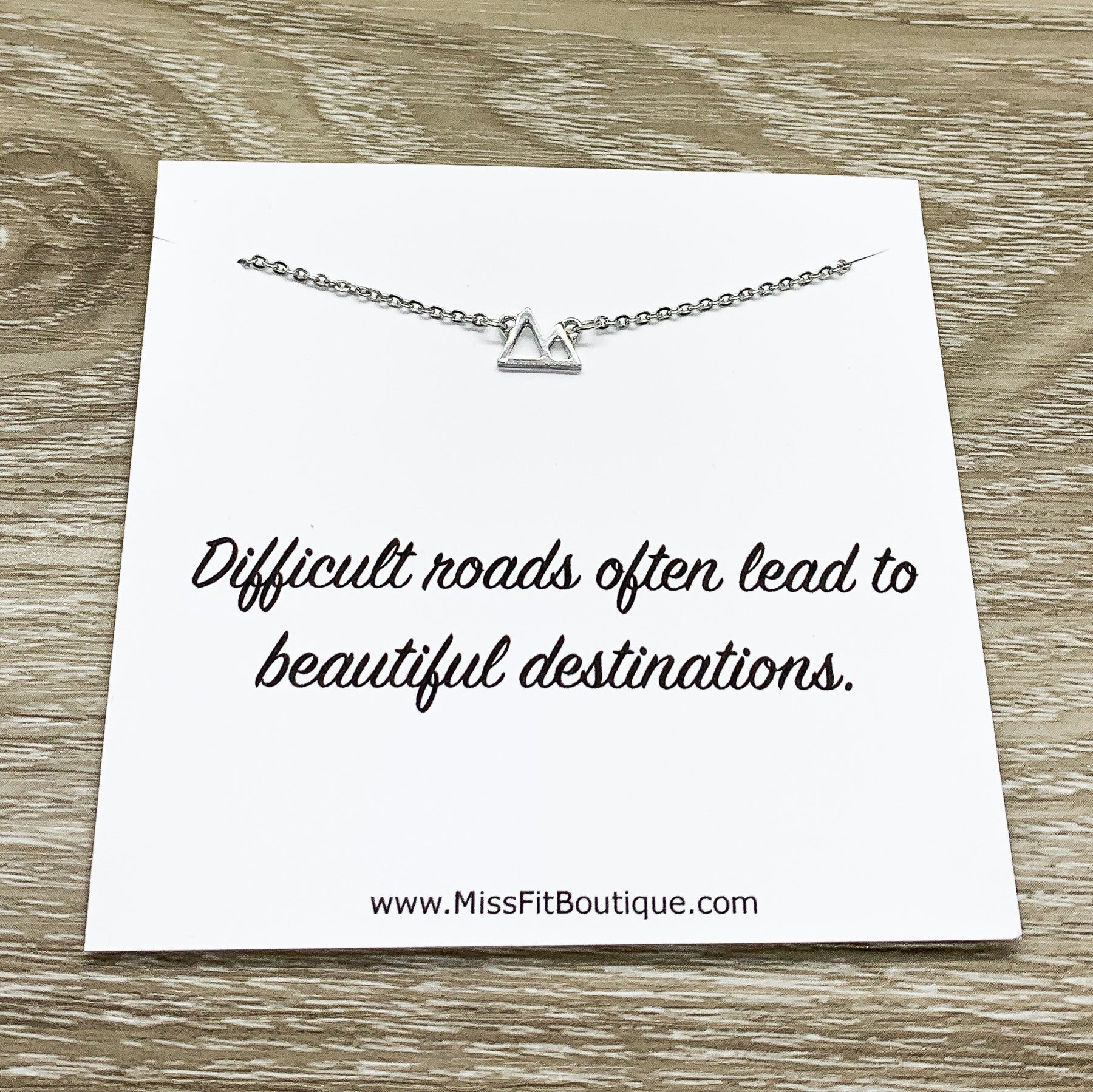 Tiny Mountain Necklace, Twin Peaks Charm, Silver Mountain Climbing Jewelry, Gift for Traveler, Minimalist Jewelry, Wanderlust Gifts