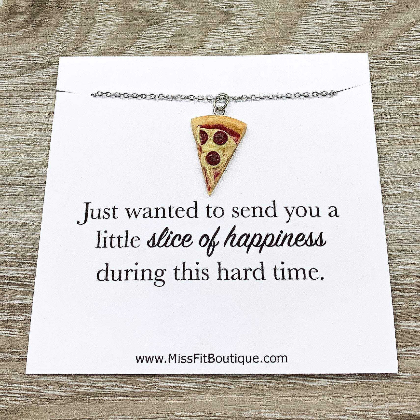 Tiny Pizza Necklace, Slice of Happiness Card, Miniature Pizza Slice Charm, Friendship Necklace, Thoughtful Friends Gift, Pizza Jewelry