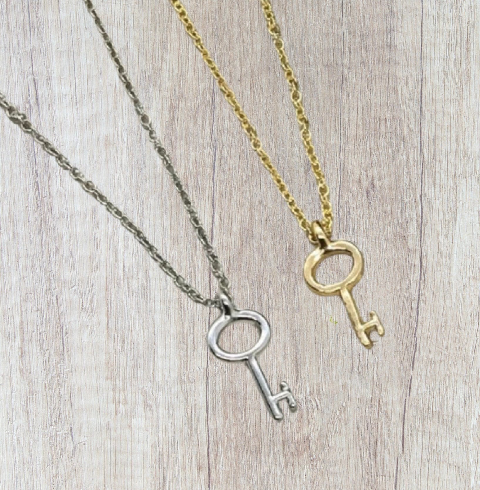 Tiny Silver Key Necklace, You Hold The Key Card, Gift for Student, Friendship Necklace, Key Shaped Pendant, Skeleton Key Charm, Student Gift