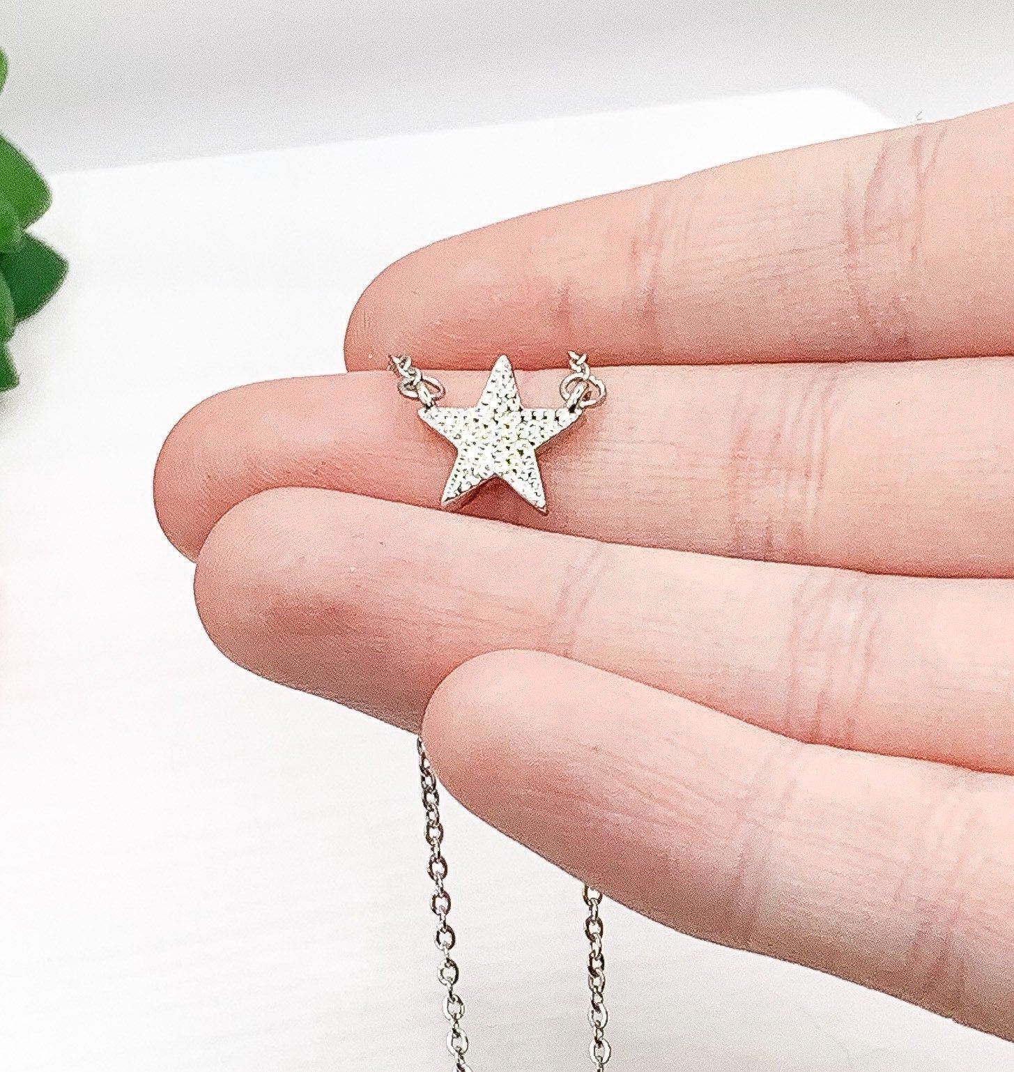 - Chain Length: 14.5” + 3” (*leave a note if you would like a different chain length - link chain instead of box chain; as pictured);
