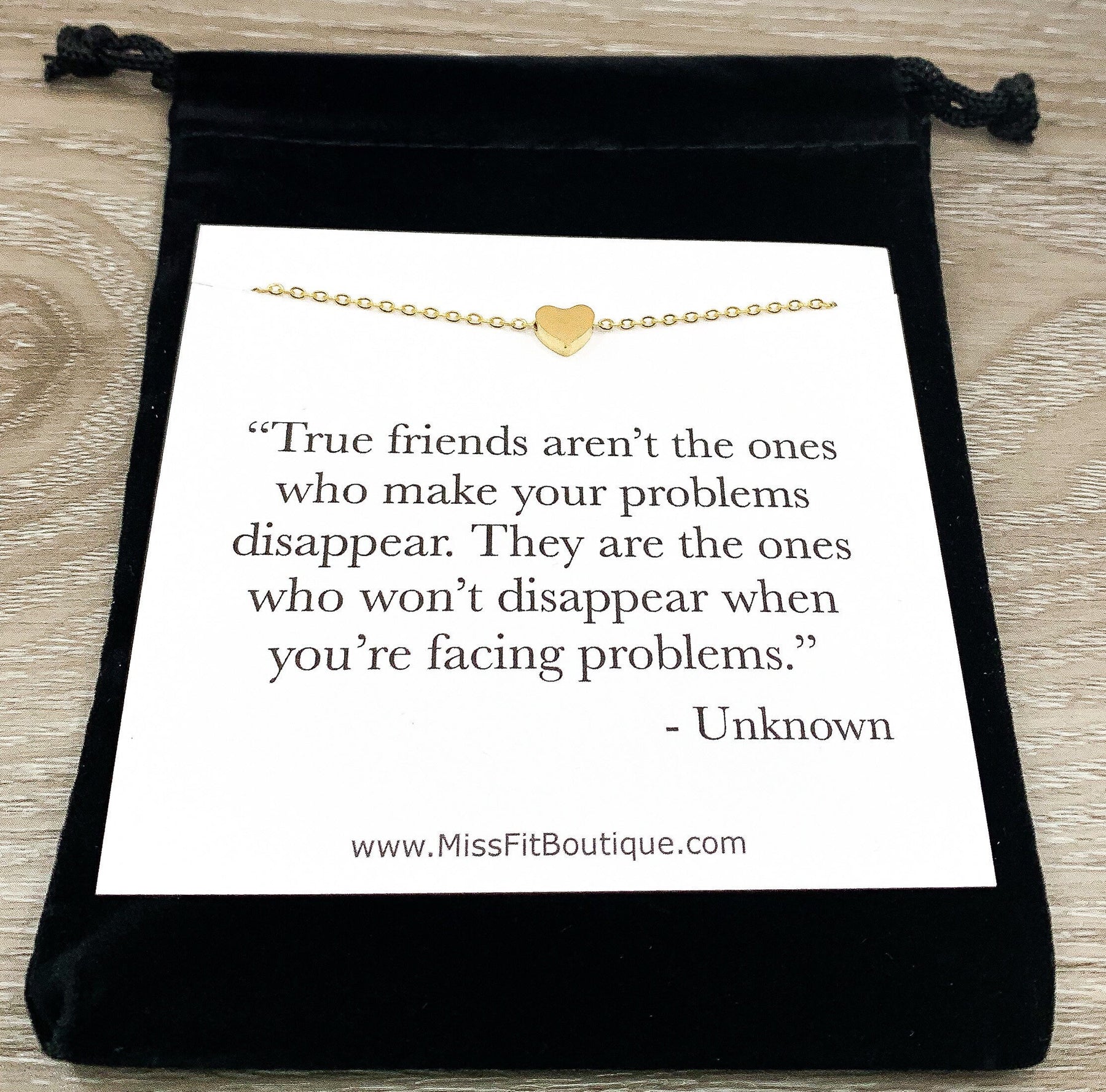 True Friends Quote Card, Tiny Heart Necklace, Simple Reminder Gift, Gift for Bestie, Gift for Best Friend, Sister Gift, Thinking of You