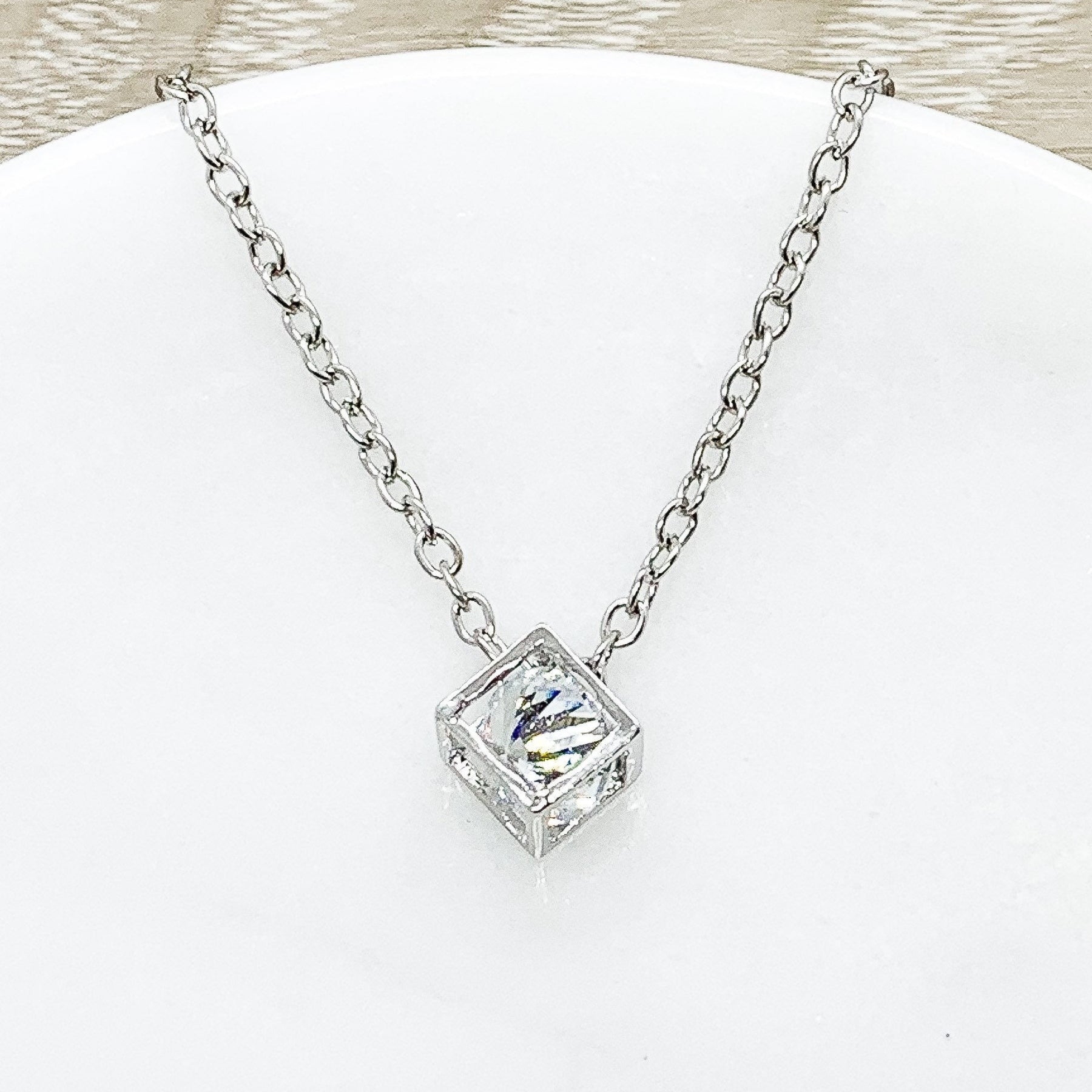 You Are Strong Card, Dainty Cube Crystal Necklace, Uplifting Gift, Silver Square Necklace, Stocking Filler, Simple Reminder, Holiday Gift