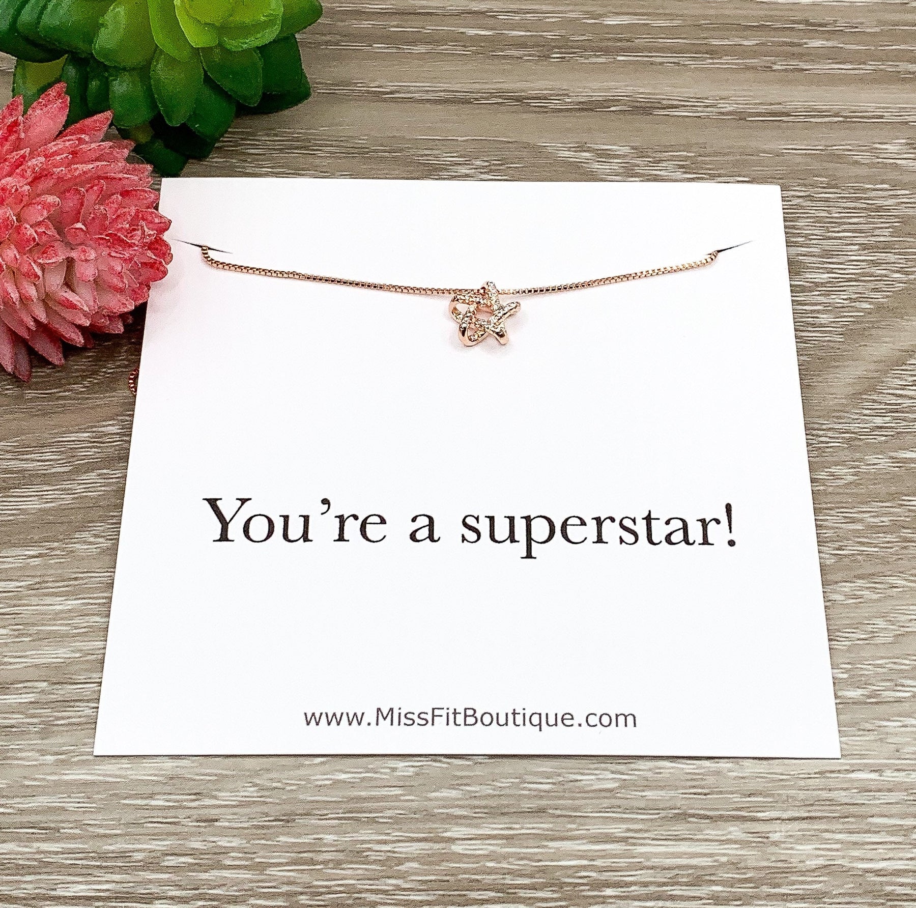 You’re a Superstar Card, Rose Gold Star Necklace, Dainty Cubic Zirconia Jewelry, Cute CZ Pendant, Celestial Necklace, Birthday Gift