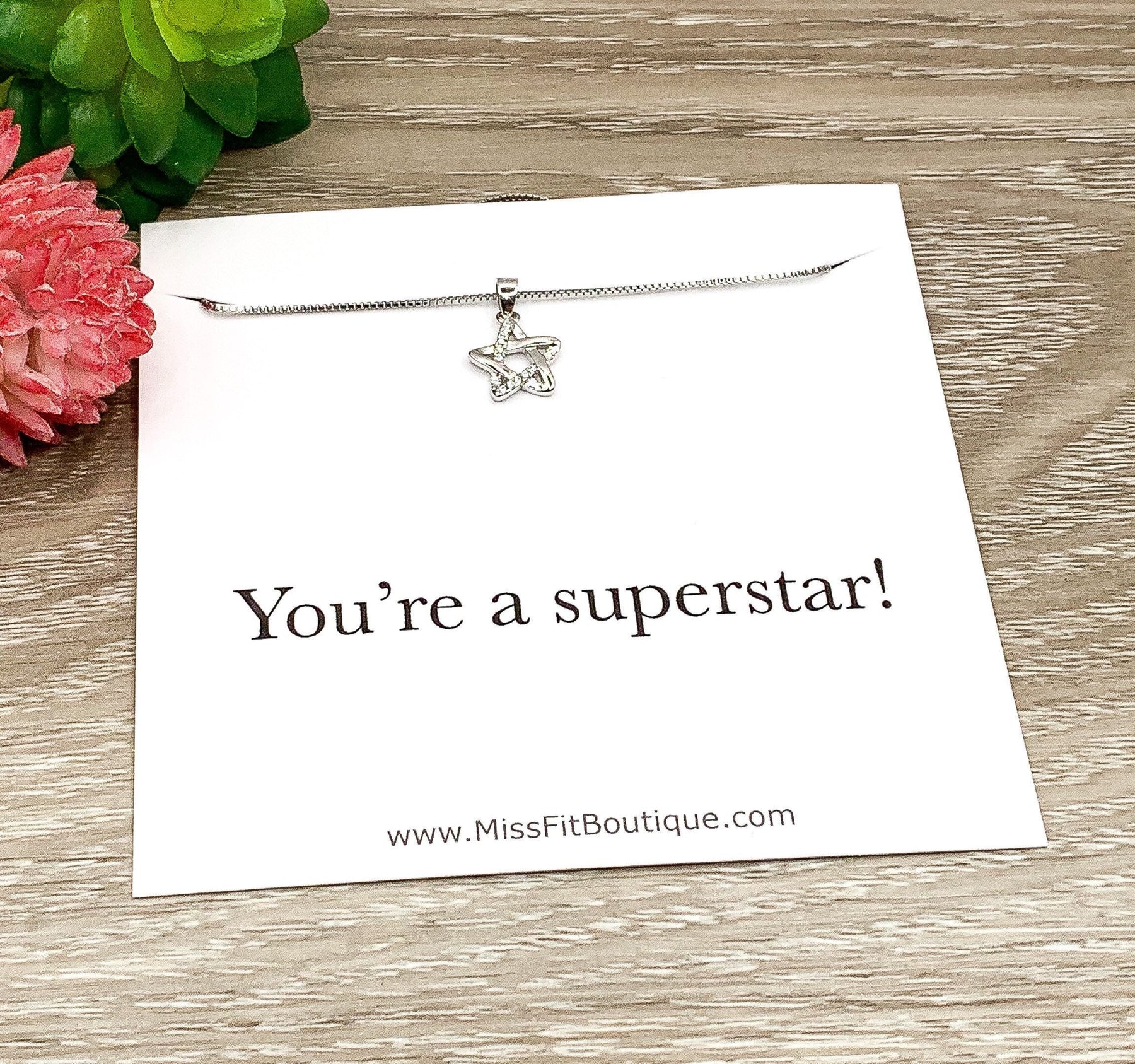 You’re a Superstar Card, Star Necklace Sterling Silver, Encouragement Gift, Dainty Cubic Zirconia Jewelry, Celestial Necklace, Uplifting